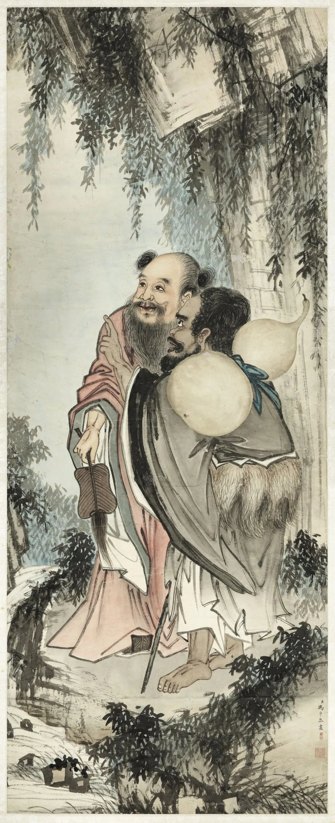 冯宁以自己的笔墨语言,将传说中的仙人形象生动地呈现在画布之上,让后人得以领略到那份神秘而迷人的仙韵道情。《二仙图》不仅是一件艺术珍品,更是研究清代绘画风格与道家文化的重要资料,值得我们细细品味与珍视。